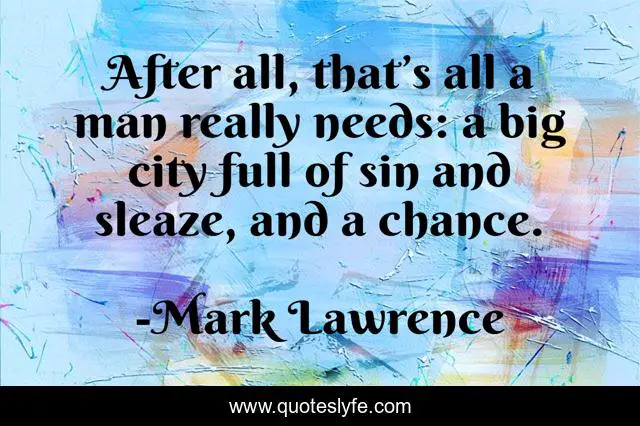 This page presents the quote "After all, that’s all a man really needs: a big city full of sin and sleaze, and a chance.". Author of this quote is Mark Lawrence. .