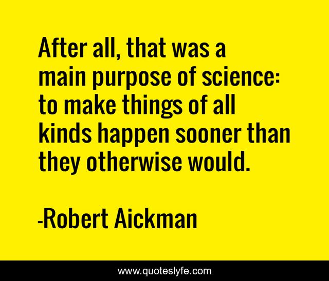 This page presents the quote "After all, that was a main purpose of science: to make things of all kinds happen sooner than they otherwise would.". Author of this quote is Robert Aickman. .