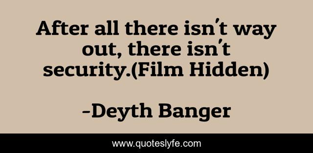 This page presents the quote "After all there isn't way out, there isn't security.(Film Hidden)". Author of this quote is Deyth Banger. This quote is about security, film, way, out,.