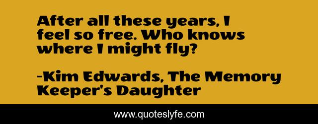 This page presents the quote "After all these years, I feel so free. Who knows where I might fly?". Author of this quote is Kim Edwards, The Memory Keeper's Daughter. .