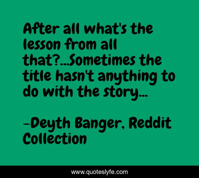 This page presents the quote "After all what's the lesson from all that?...Sometimes the title hasn't anything to do with the story...". Author of this quote is Deyth Banger, Reddit Collection. This quote is about lesson, all, from, story, title,.