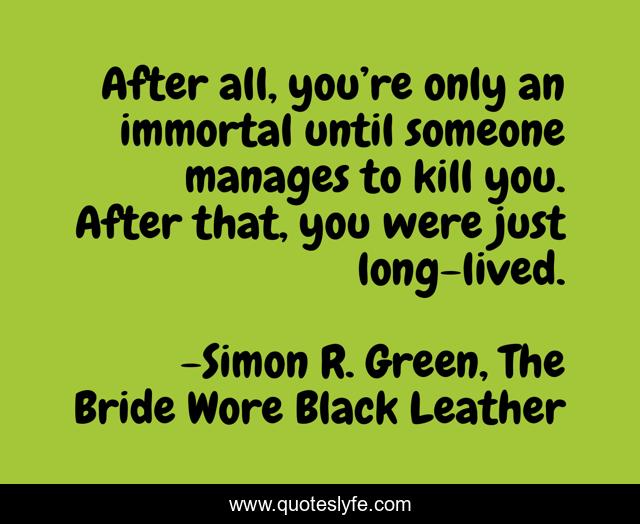 This page presents the quote "After all, you’re only an immortal until someone manages to kill you. After that, you were just long-lived.". Author of this quote is Simon R. Green, The Bride Wore Black Leather. .