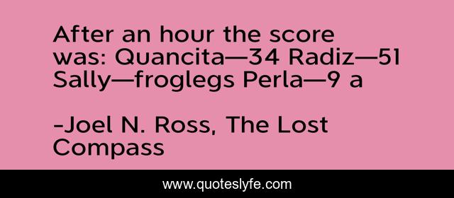 "Joel N. Ross, The Lost Compass Quotes." Quoteslyfe.com, 2025. Fri. 05 Dec. 2025. <https://www.quoteslyfe.com/quote/After-an-hour-the-score-was-Quancita-41622>.