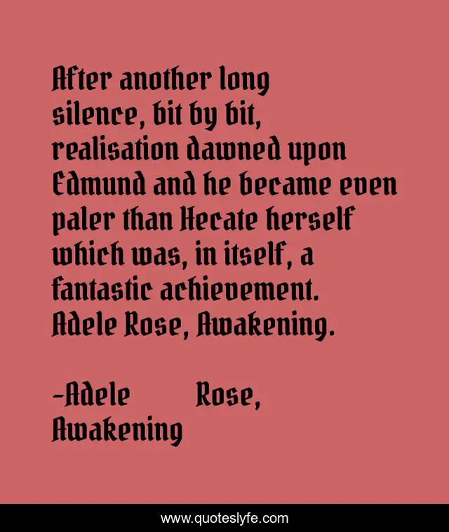 After another long silence, bit by bit, realisation dawned upon Edmund and he became even paler than Hecate herself which was, in itself, a fantastic achievement. Adele Rose, Awakening.