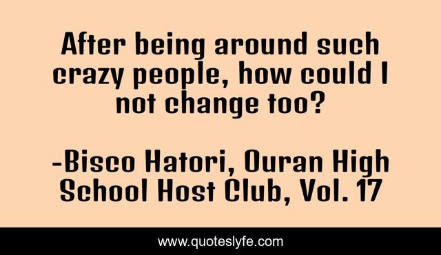 This page presents the quote "After being around such crazy people, how could I not change too?". Author of this quote is Bisco Hatori, Ouran High School Host Club, Vol. 17. This quote is about growth, friendship, change,.