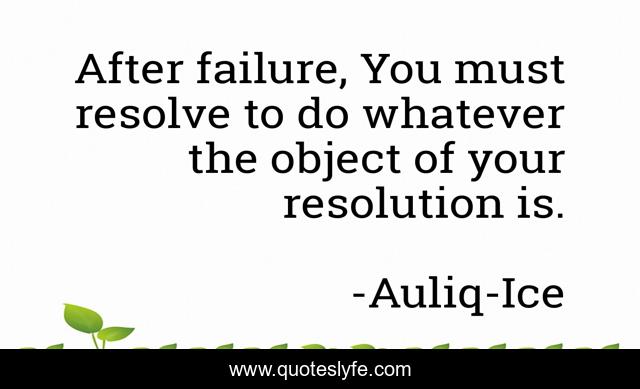 This page presents the quote "After failure, You must resolve to do whatever the object of your resolution is.". Author of this quote is Auliq-Ice. This quote is about confidence, success, positive, motivational, failure, courage, optimistic, inspirational, problem-solving,.