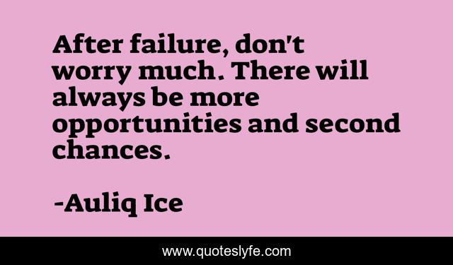 This page presents the quote "After failure, don't worry much. There will always be more opportunities and second chances.". Author of this quote is Auliq Ice. This quote is about positive, confidence, motivational, optimistic,.