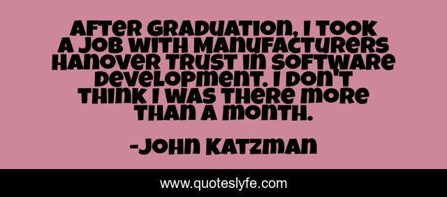 This page presents the quote "After graduation, I took a job with Manufacturers Hanover Trust in software development. I don't think I was there more than a month.". Author of this quote is John Katzman. This quote is about job, trust, think,.