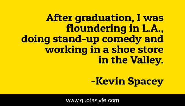 This page presents the quote "After graduation, I was floundering in L.A., doing stand-up comedy and working in a shoe store in the Valley.". Author of this quote is Kevin Spacey. This quote is about comedy, working,.