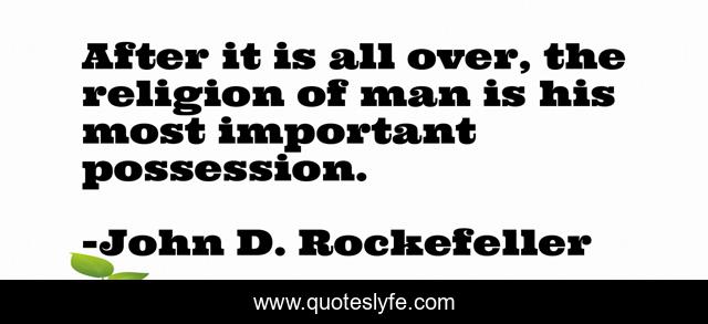 This page presents the quote "After it is all over, the religion of man is his most important possession.". Author of this quote is John D. Rockefeller. This quote is about possession, important, man,.