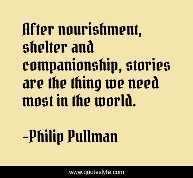 "Philip Pullman Quotes." Quoteslyfe.com, 2025. Tue. 09 Dec. 2025. <https://www.quoteslyfe.com/quote/After-nourishment-shelter-and-companionship-stories-are-26725>.