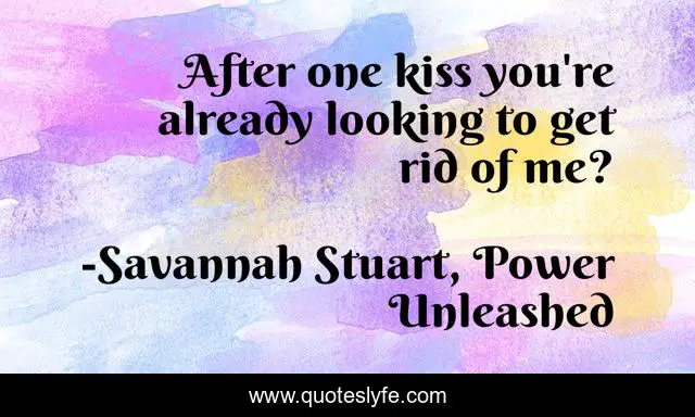 This page presents the quote "After one kiss you're already looking to get rid of me?". Author of this quote is Savannah Stuart, Power Unleashed. This quote is about wolf-shifters, fae, paranormal-romance, immortals,.