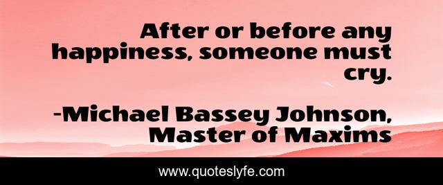 "Michael Bassey Johnson, Master of Maxims Quotes." Quoteslyfe.com, 2026. Mon. 12 Jan. 2026. <https://www.quoteslyfe.com/quote/After-or-before-any-happiness-someone-must-76038>.