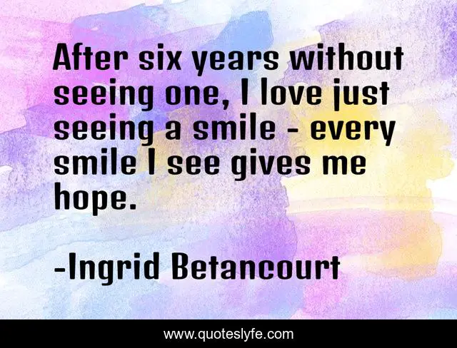 This page presents the quote "After six years without seeing one, I love just seeing a smile - every smile I see gives me hope.". Author of this quote is Ingrid Betancourt. This quote is about me, love, hope, affection,.