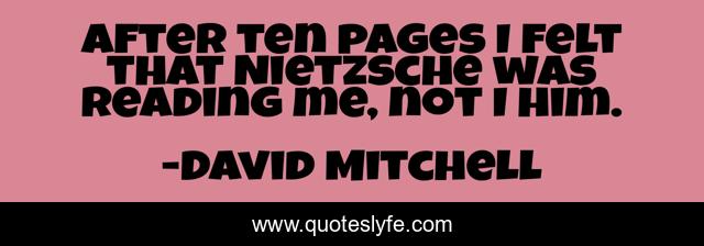 This page presents the quote "After ten pages I felt that Nietzsche was reading me, not I him.". Author of this quote is David Mitchell. .