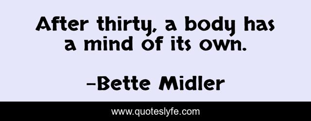 This page presents the quote "After thirty, a body has a mind of its own.". Author of this quote is Bette Midler. This quote is about body, mind, thirty,.