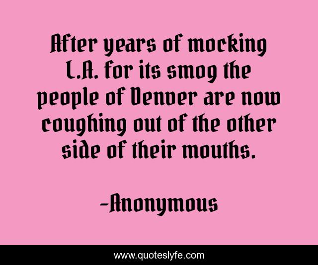 This page presents the quote "After years of mocking L.A. for its smog the people of Denver are now coughing out of the other side of their mouths.". Author of this quote is Anonymous. This quote is about travel, cities,.