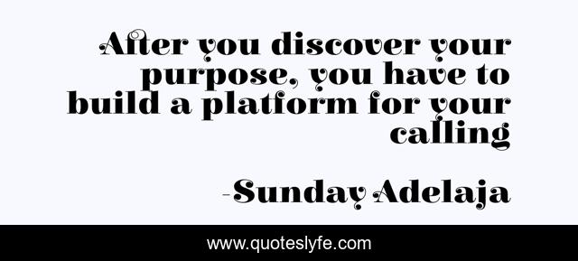 This page presents the quote "After you discover your purpose, you have to build a platform for your calling". Author of this quote is Sunday Adelaja. This quote is about life, blessing, jobless, money, work, calling, platform, job, joblessness,.