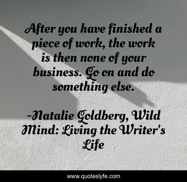This page presents the quote "After you have finished a piece of work, the work is then none of your business. Go on and do something else.". Author of this quote is Natalie Goldberg, Wild Mind: Living the Writer's Life. .