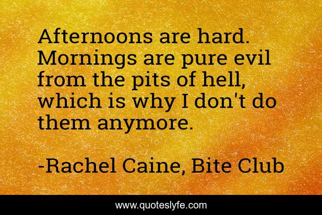 "Rachel Caine, Bite Club Quotes." Quoteslyfe.com, 2025. Sat. 06 Dec. 2025. <https://www.quoteslyfe.com/quote/Afternoons-are-hard-Mornings-are-pure-evil-199157>.