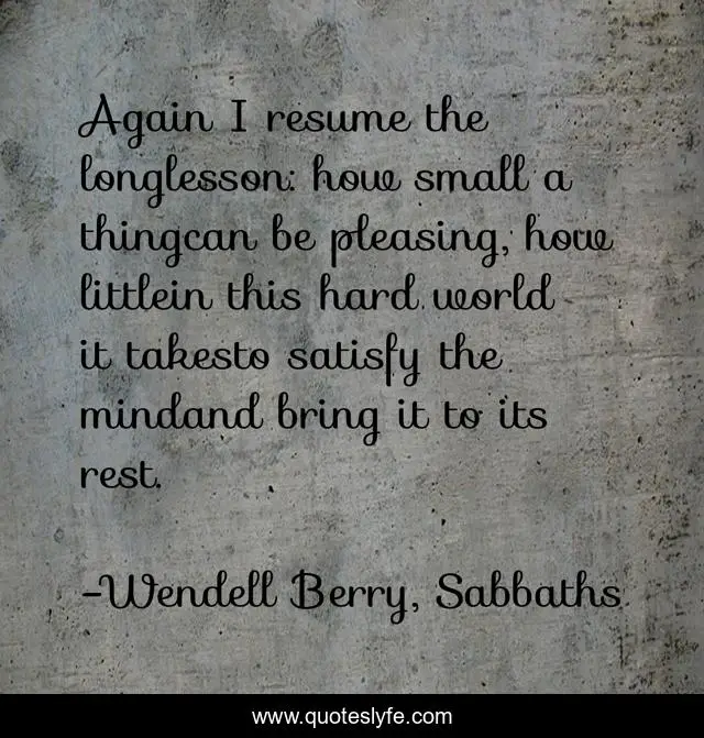 "Wendell Berry, Sabbaths Quotes." Quoteslyfe.com, 2025. Fri. 05 Dec. 2025. <https://www.quoteslyfe.com/quote/Again-I-resume-the-longlesson-how-small-24918>.