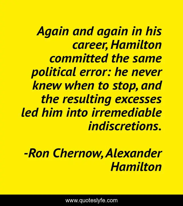 This page presents the quote "Again and again in his career, Hamilton committed the same political error: he never knew when to stop, and the resulting excesses led him into irremediable indiscretions.". Author of this quote is Ron Chernow, Alexander Hamilton. .