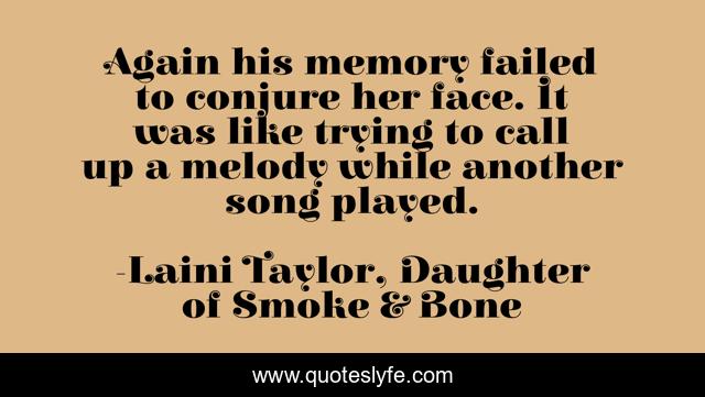 This page presents the quote "Again his memory failed to conjure her face. It was like trying to call up a melody while another song played.". Author of this quote is Laini Taylor, Daughter of Smoke & Bone. .