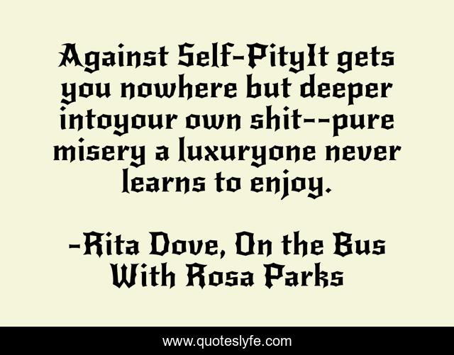 "Rita Dove, On the Bus With Rosa Parks Quotes." Quoteslyfe.com, 2025. Mon. 08 Dec. 2025. <https://www.quoteslyfe.com/quote/Against-Self-PityIt-gets-you-nowhere-but-249469>.