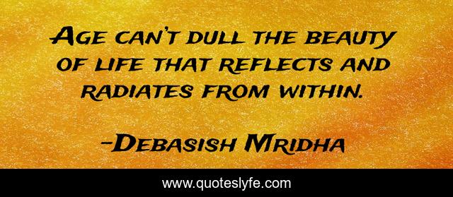 This page presents the quote "Age can’t dull the beauty of life that reflects and radiates from within.". Author of this quote is Debasish Mridha. This quote is about beauty-radiates-from-within, miraboli, beauty, oscar-wilde, age, philosophy, debasish-mridha, quotes, debasish-mridha-md,.