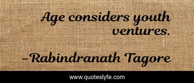 "Rabindranath Tagore Quotes." Quoteslyfe.com, 2025. Sun. 07 Dec. 2025. <https://www.quoteslyfe.com/quote/Age-considers-youth-ventures-296750>.