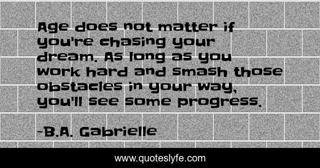 This page presents the quote "Age does not matter if you're chasing your dream. As long as you work hard and smash those obstacles in your way, you'll see some progress.". Author of this quote is B.A. Gabrielle. .