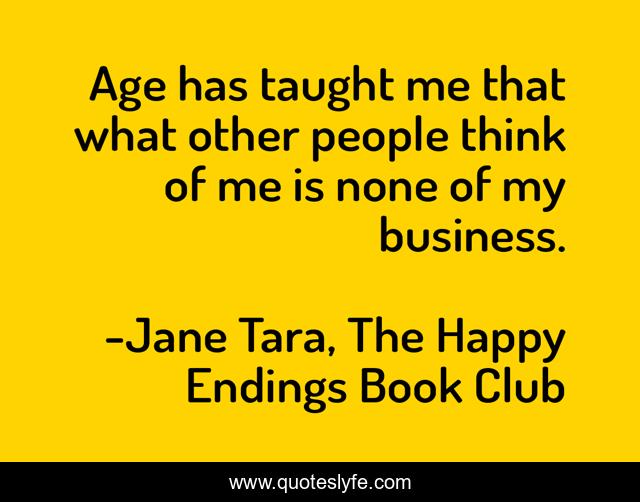 This page presents the quote "Age has taught me that what other people think of me is none of my business.". Author of this quote is Jane Tara, The Happy Endings Book Club. This quote is about age, women-and-ageing, growing-older,.