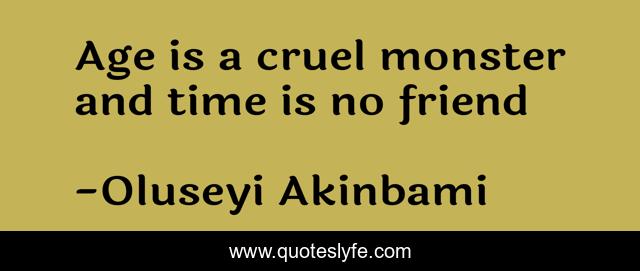 This page presents the quote "Age is a cruel monster and time is no friend". Author of this quote is Oluseyi Akinbami. .