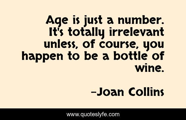 This page presents the quote "Age is just a number. It's totally irrelevant unless, of course, you happen to be a bottle of wine.". Author of this quote is Joan Collins. This quote is about number, wine,.
