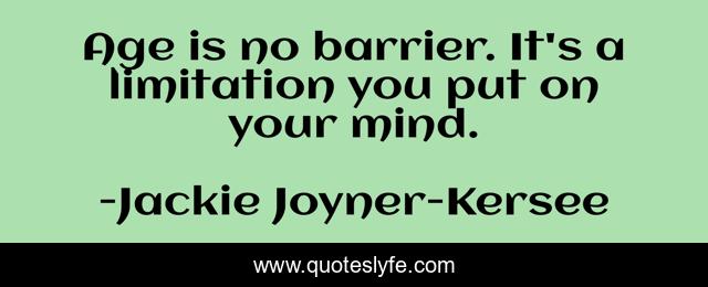 This page presents the quote "Age is no barrier. It's a limitation you put on your mind.". Author of this quote is Jackie Joyner-Kersee. This quote is about limitation, mind,.