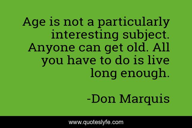 "Don Marquis Quotes." Quoteslyfe.com, 2025. Sun. 07 Dec. 2025. <https://www.quoteslyfe.com/quote/Age-is-not-a-particularly-interesting-subject-297022>.