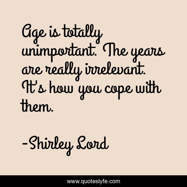 This page presents the quote "Age is totally unimportant. The years are really irrelevant. It's how you cope with them.". Author of this quote is Shirley Lord. This quote is about self, confidence,.