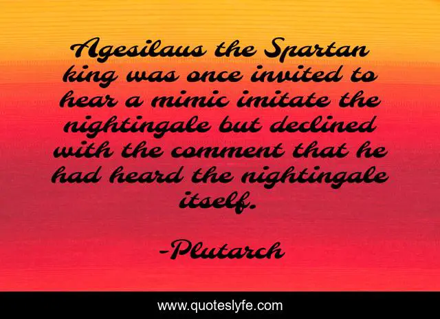 This page presents the quote "Agesilaus the Spartan king was once invited to hear a mimic imitate the nightingale but declined with the comment that he had heard the nightingale itself.". Author of this quote is Plutarch. .