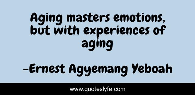 This page presents the quote "Aging masters emotions, but with experiences of aging". Author of this quote is Ernest Agyemang Yeboah. This quote is about aging, emotions-and-attitude, emotions, emotional-control,.