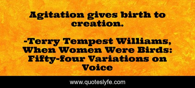 "Terry Tempest Williams, When Women Were Birds: Fifty-four Variations on Voice Quotes." Quoteslyfe.com, 2025. Mon. 08 Dec. 2025. <https://www.quoteslyfe.com/quote/Agitation-gives-birth-to-creation-199627>.