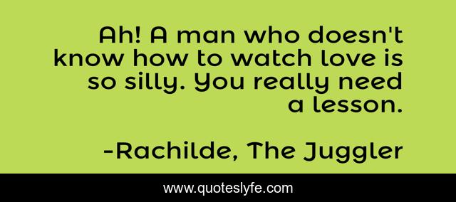 This page presents the quote "Ah! A man who doesn't know how to watch love is so silly. You really need a lesson.". Author of this quote is Rachilde, The Juggler. This quote is about lessons, love, men, understanding, affection, women,.