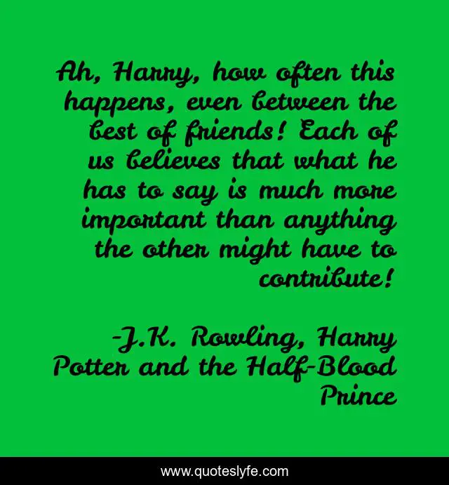 This page presents the quote "Ah, Harry, how often this happens, even between the best of friends! Each of us believes that what he has to say is much more important than anything the other might have to contribute!". Author of this quote is J.K. Rowling, Harry Potter and the Half-Blood Prince. .