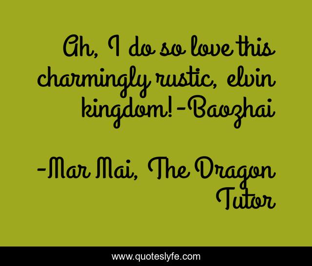 This page presents the quote "Ah, I do so love this charmingly rustic, elvin kingdom!-Baozhai". Author of this quote is Mar Mai, The Dragon Tutor. This quote is about the-dragon-tutor, dragon, fun, writing, comic, dragons,.