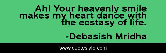 This page presents the quote "Ah! Your heavenly smile makes my heart dance with the ecstasy of life.". Author of this quote is Debasish Mridha. This quote is about miraboli, oscar-wilde, philosophy, debasish-mridha, smile, ecstasy-of-life, quotes, buddha, gandhi,.