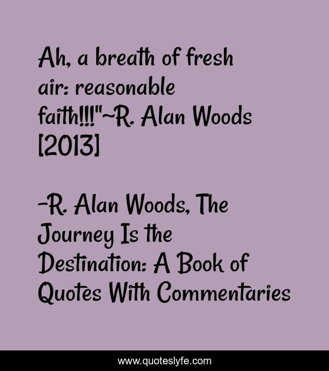This page presents the quote "Ah, a breath of fresh air: reasonable faith!!!"~R. Alan Woods [2013]". Author of this quote is R. Alan Woods, The Journey Is the Destination: A Book of Quotes With Commentaries. This quote is about faith, reason, r-alan-woods, reasonable,.