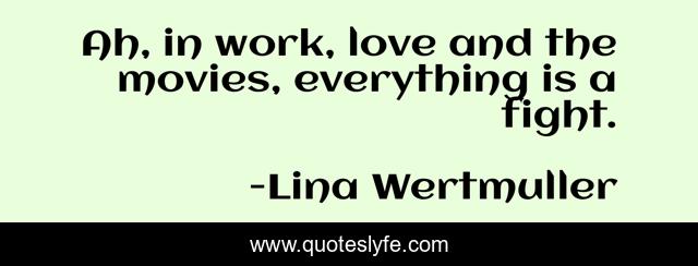 This page presents the quote "Ah, in work, love and the movies, everything is a fight.". Author of this quote is Lina Wertmuller. This quote is about work, love, affection, fight,.