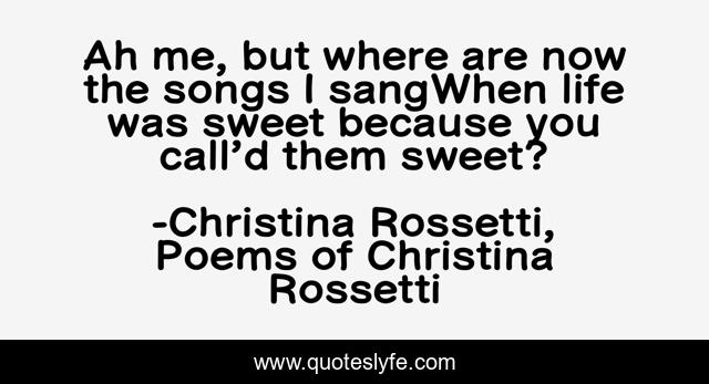 This page presents the quote "Ah me, but where are now the songs I sangWhen life was sweet because you call’d them sweet?". Author of this quote is Christina Rossetti, Poems of Christina Rossetti. This quote is about love, affection,.