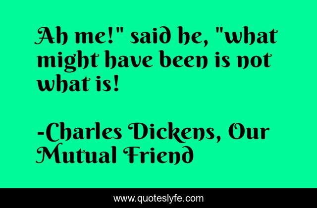 This page presents the quote "Ah me!" said he, "what might have been is not what is!". Author of this quote is Charles Dickens, Our Mutual Friend. This quote is about life, destiny, fate,.