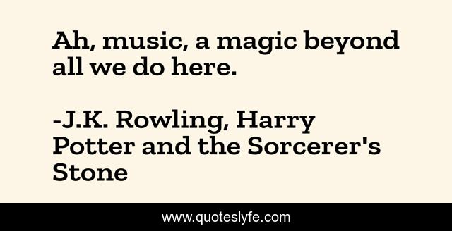 "J.K. Rowling, Harry Potter and the Sorcerer's Stone Quotes." Quoteslyfe.com, 2025. Tue. 09 Dec. 2025. <https://www.quoteslyfe.com/quote/Ah-music-a-magic-beyond-all-we-79394>.