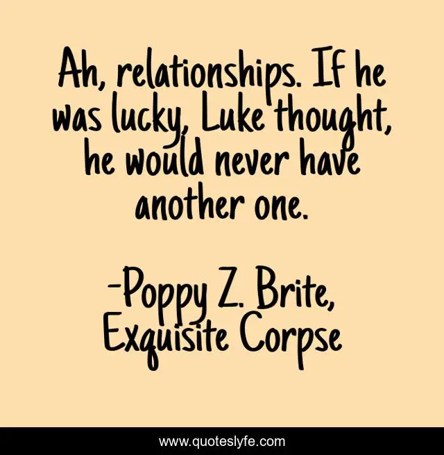 "Poppy Z. Brite, Exquisite Corpse Quotes." Quoteslyfe.com, 2025. Fri. 05 Dec. 2025. <https://www.quoteslyfe.com/quote/Ah-relationships-If-he-was-lucky-Luke-100573>.